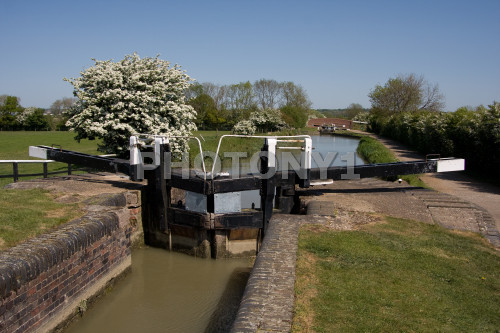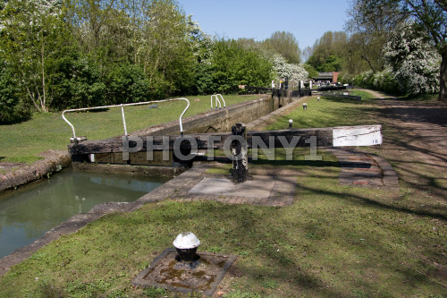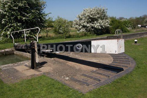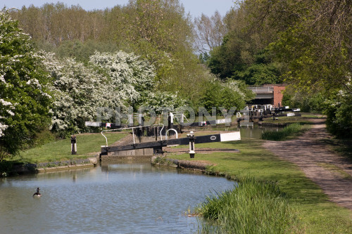 GRAND UNION CANAL NORTHAMPTON ARM A SERIES OF 13 OR SO LOCKS CLOSE TOGETHER. THE RIVER NENE WHITE MILLS SLUICE ON THE OUTSKIRTS OF NORTHAMPTON