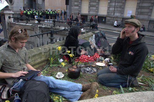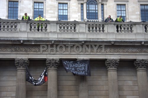 THREADNEEDLE STREET, THE CITY AND THE BANK OF ENGLAND VISITED BY DEMONSTRATORS PROTESTING AGAINST THE CURRENT CREDIT CRUNCH, OVERPAID BANKERS, POVERTY AND GLOBAL ENVIRONMENTAL ISSUES