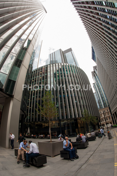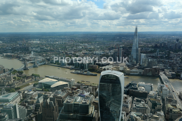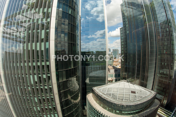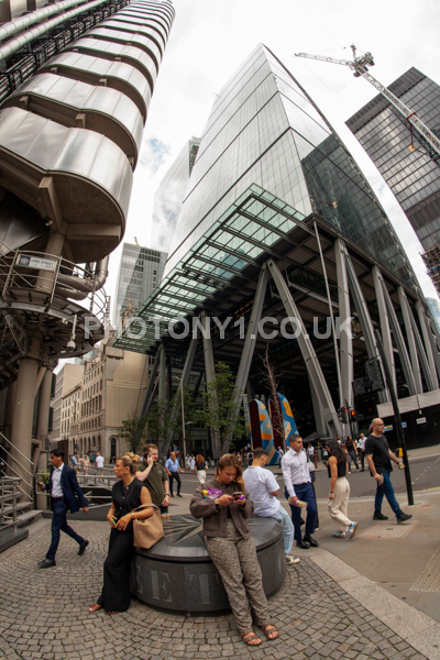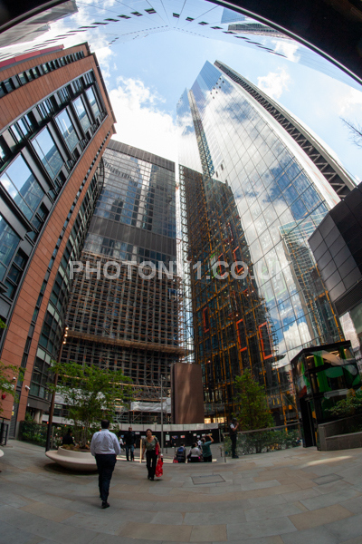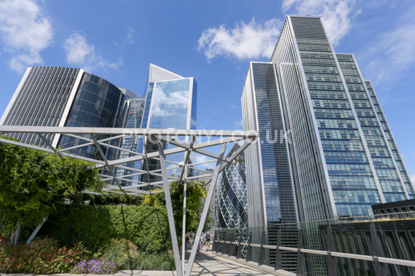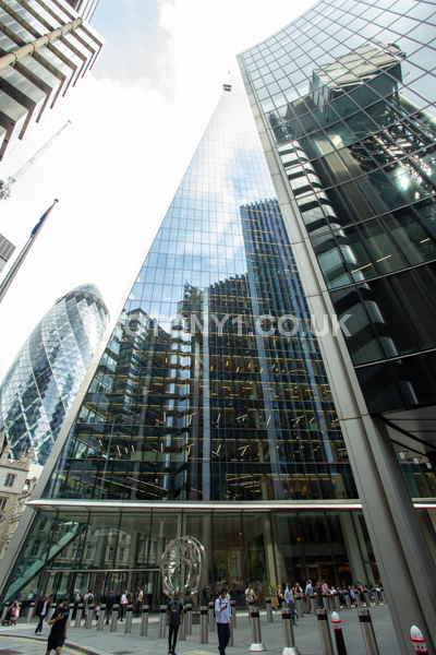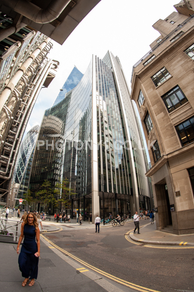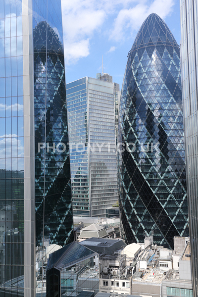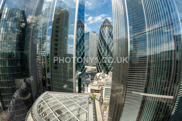 The Gherkin, Leadenhall Market, Horizon 22 and other modern skyscrapers.