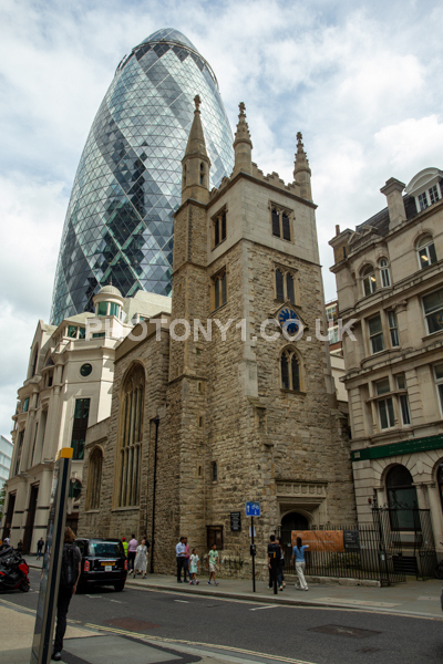 The Gherkin, Leadenhall Market, Horizon 22 and other modern skyscrapers.
